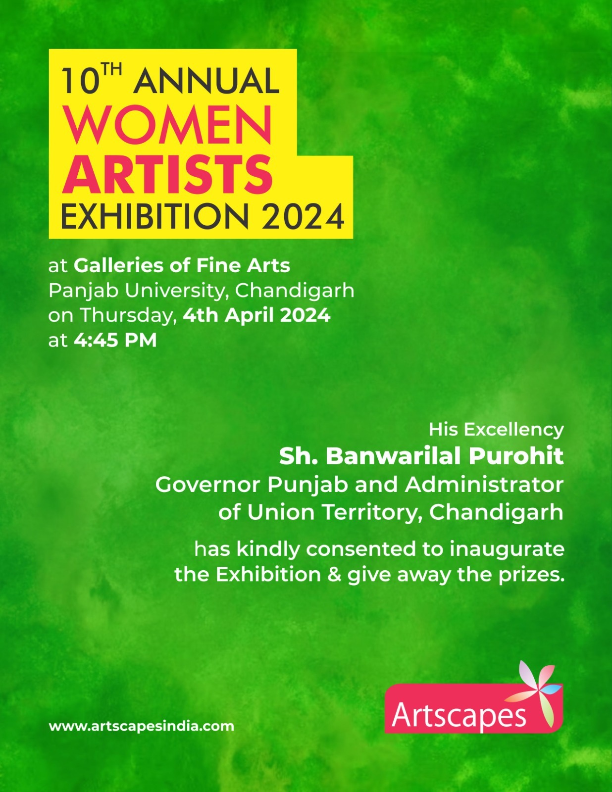 The application forms, photographs and entry fee will be received up to 31st January 2024, from 10:00am to 06:00pm at the office of Artscapes (Sunday closed).